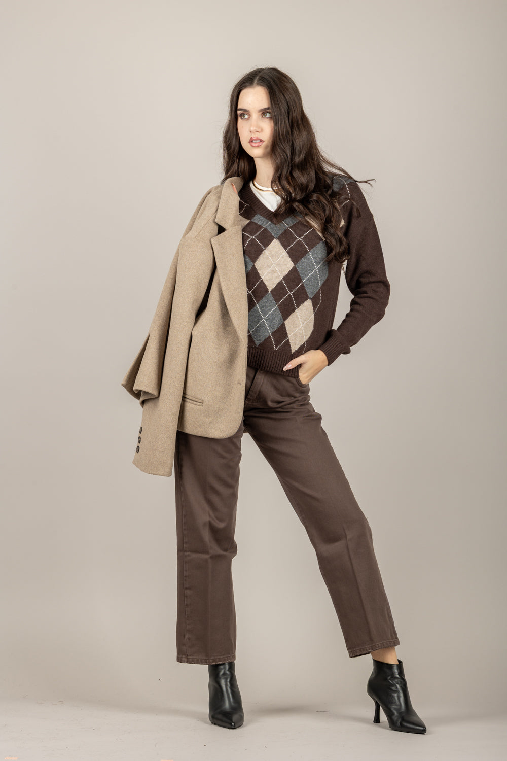 TENSIONE IN - D82036 - MAGLIA A ROMBI SCOLLO A V