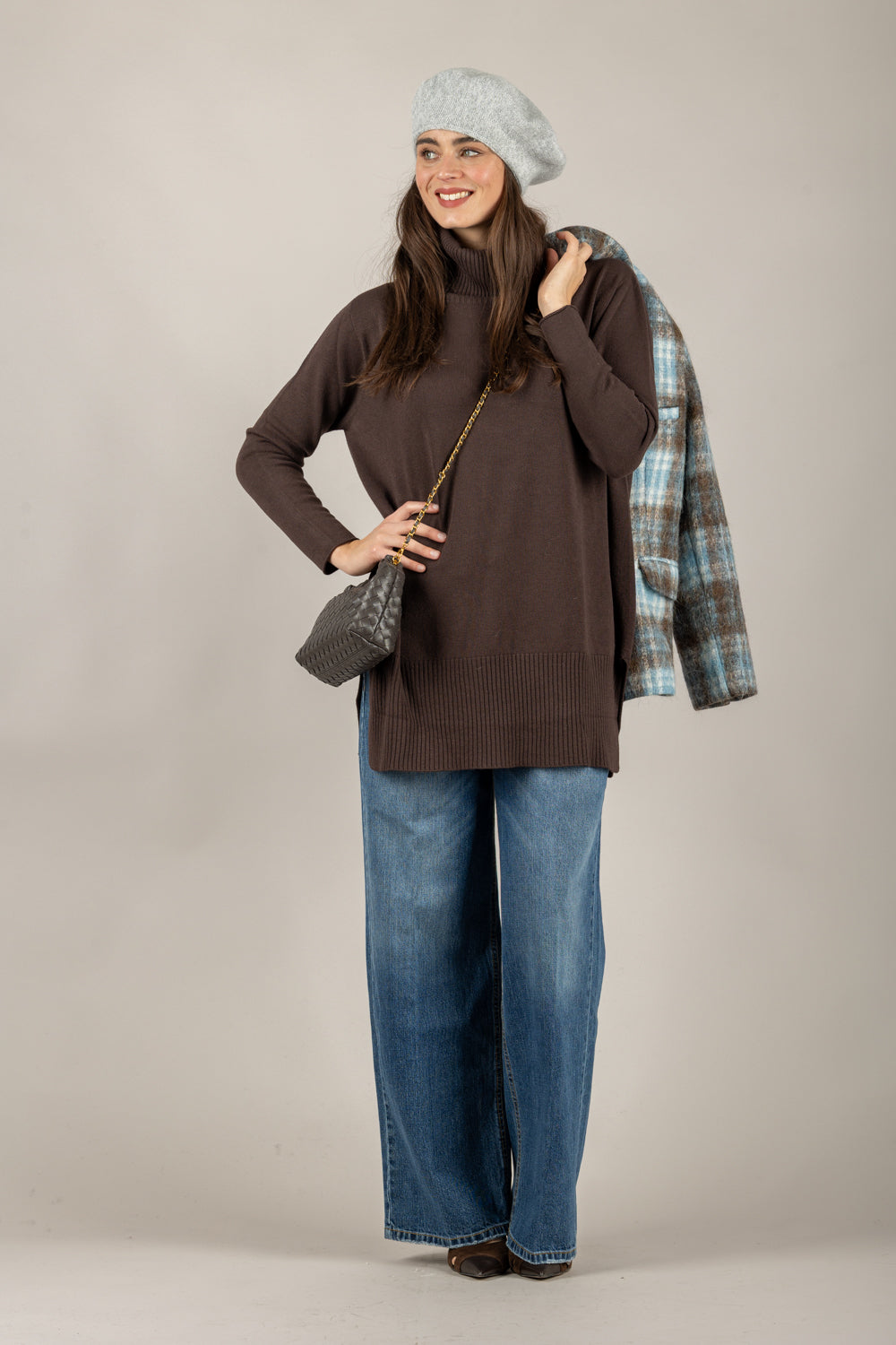 • Casa Vicolo propone una maglia a collo alto con spacchetti laterali dal taglio elegante e contemporaneo, perfetta per chi cerca un capo raffinato e versatile.